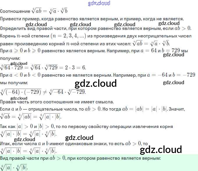 Ответы. §6. Свойства корня n-й степени по Алгебре 11 класс Учебник Мордкович Базовый и углубленный уровень Мнемозина