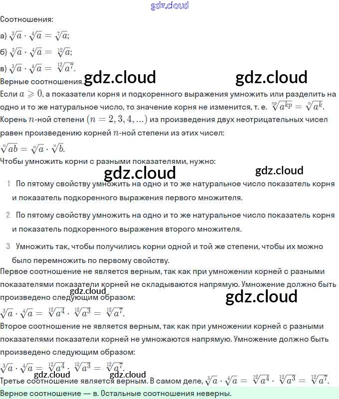 Ответы. §6. Свойства корня n-й степени по Алгебре 11 класс Учебник Мордкович Базовый и углубленный уровень Мнемозина