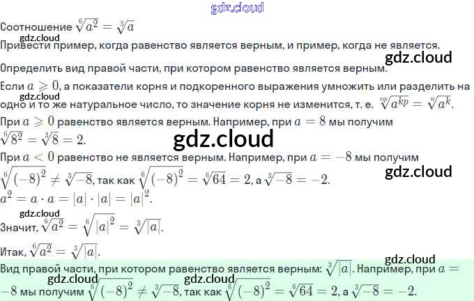 Ответы. §6. Свойства корня n-й степени по Алгебре 11 класс Учебник Мордкович Базовый и углубленный уровень Мнемозина