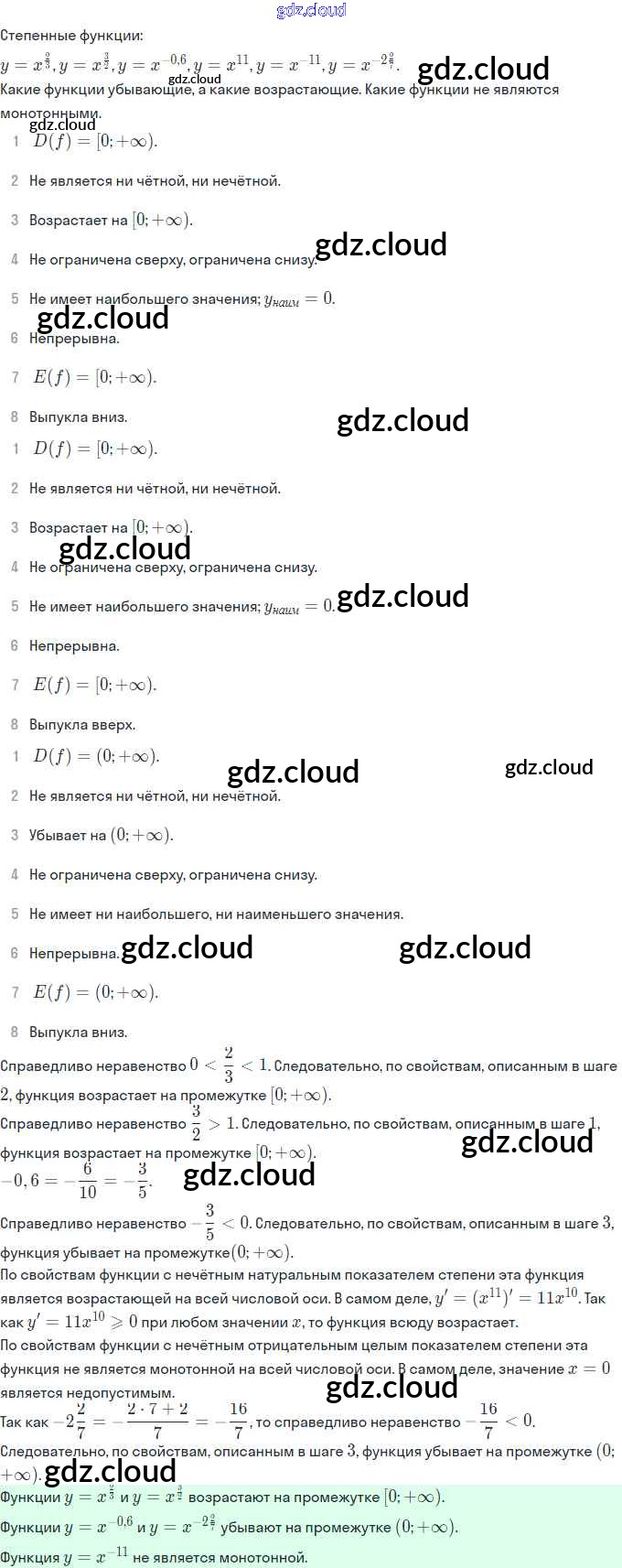 Ответы. §9. Степенная функция, её свойства и график по Алгебре 11 класс Учебник Мордкович Базовый и углубленный уровень Мнемозина