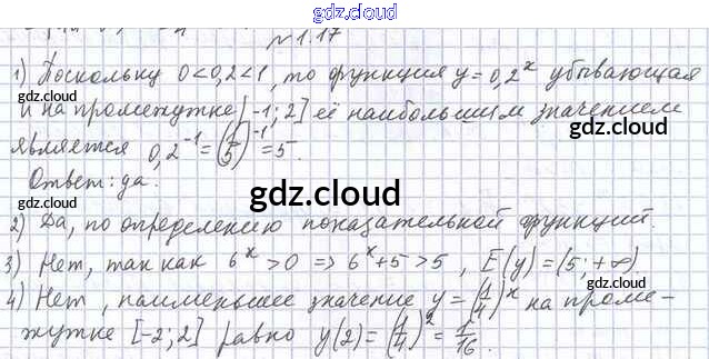 Ответ на задание 1.17 Учебник Алгебра за 11 (одиннадцатый) класс Мерзляк, Номировский, Поляков Алгоритм успеха Углубленный уровень 2019