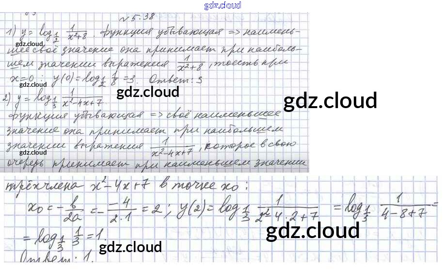 Ответ на задание 5.38 Учебник Алгебра за 11 (одиннадцатый) класс Мерзляк, Номировский, Поляков Алгоритм успеха Углубленный уровень 2019