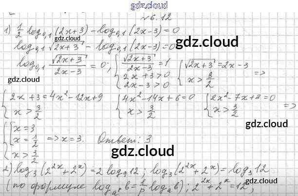 Ответ на задание 6.12 Учебник Алгебра за 11 (одиннадцатый) класс Мерзляк, Номировский, Поляков Алгоритм успеха Углубленный уровень 2019