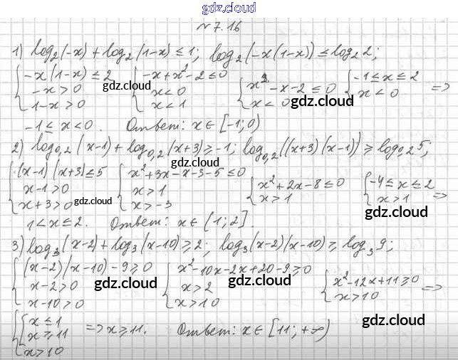 Ответ на задание 7.16 Учебник Алгебра за 11 (одиннадцатый) класс Мерзляк, Номировский, Поляков Алгоритм успеха Углубленный уровень 2019