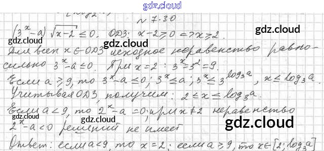 Ответ на задание 7.30 Учебник Алгебра за 11 (одиннадцатый) класс Мерзляк, Номировский, Поляков Алгоритм успеха Углубленный уровень 2019