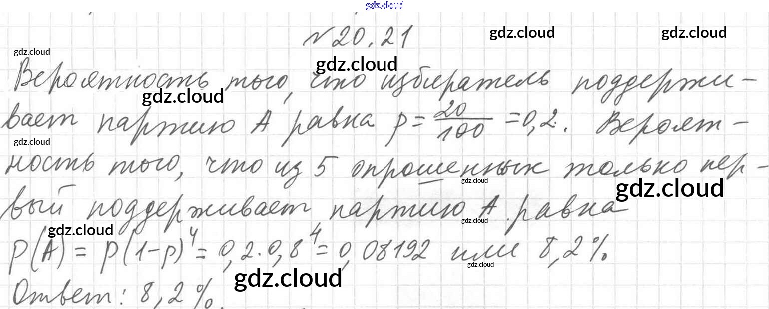 Ответ на задание 20.21 Учебник Алгебра за 11 (одиннадцатый) класс Мерзляк, Номировский, Поляков Алгоритм успеха Углубленный уровень 2019