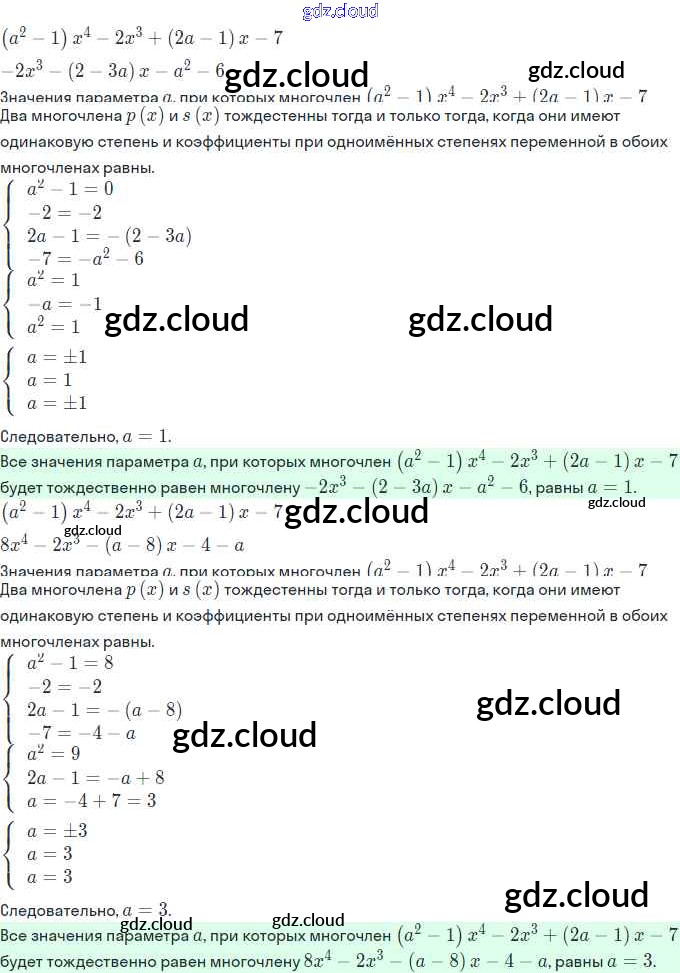 Ответы. §1. Многочлены от одной переменной по Алгебре 11 класс Задачник Мордкович Базовый и углубленный уровень Часть Мнемозина