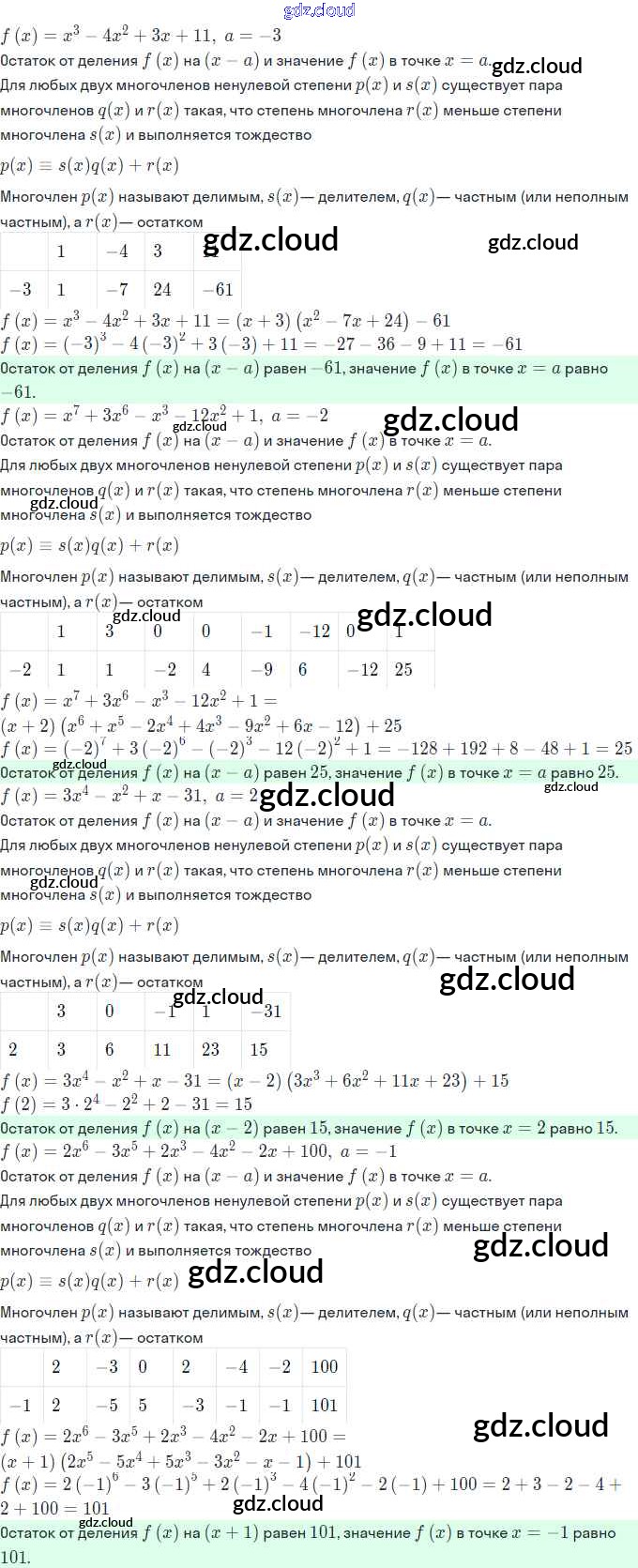 Ответы. §1. Многочлены от одной переменной по Алгебре 11 класс Задачник Мордкович Базовый и углубленный уровень Часть Мнемозина
