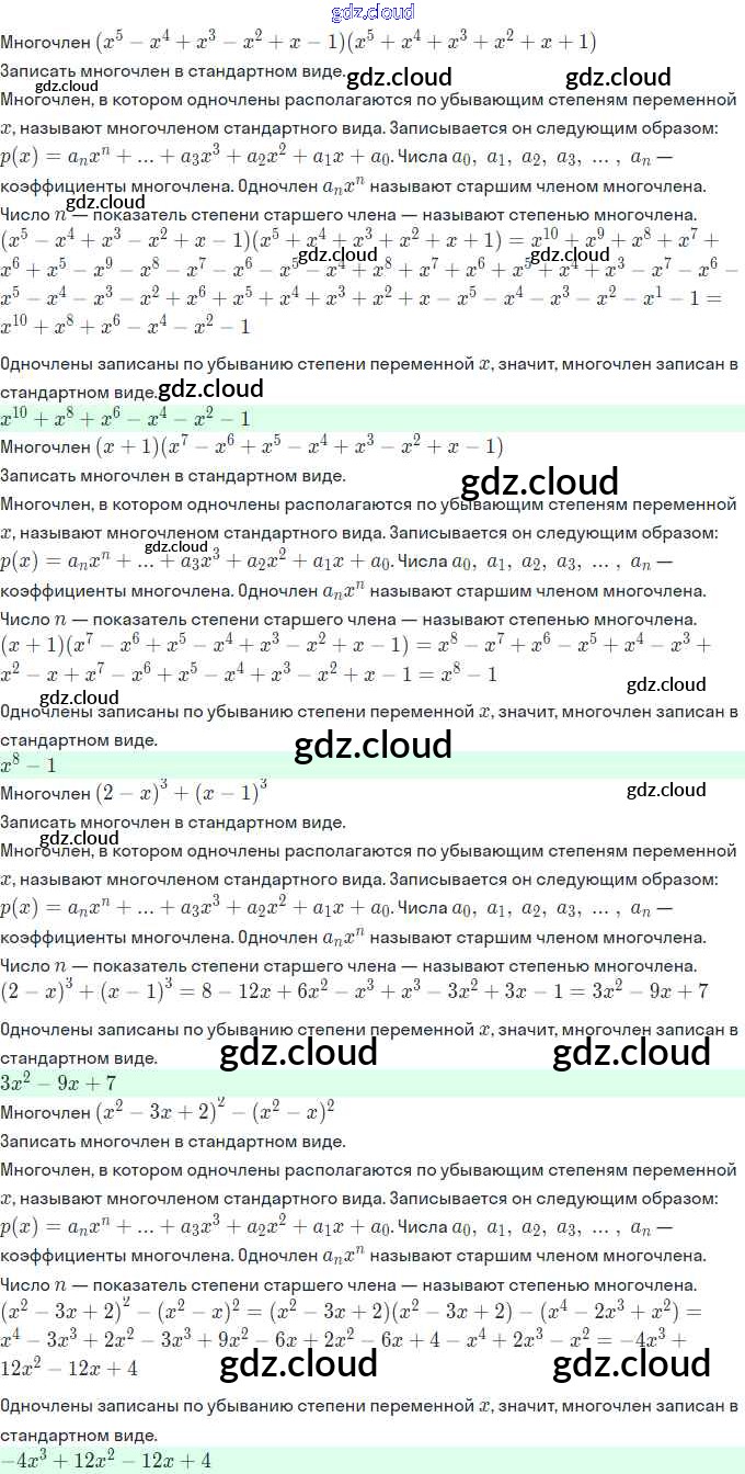 Ответы. §1. Многочлены от одной переменной по Алгебре 11 класс Задачник Мордкович Базовый и углубленный уровень Часть Мнемозина