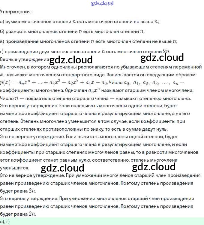 Ответы. §1. Многочлены от одной переменной по Алгебре 11 класс Задачник Мордкович Базовый и углубленный уровень Часть Мнемозина