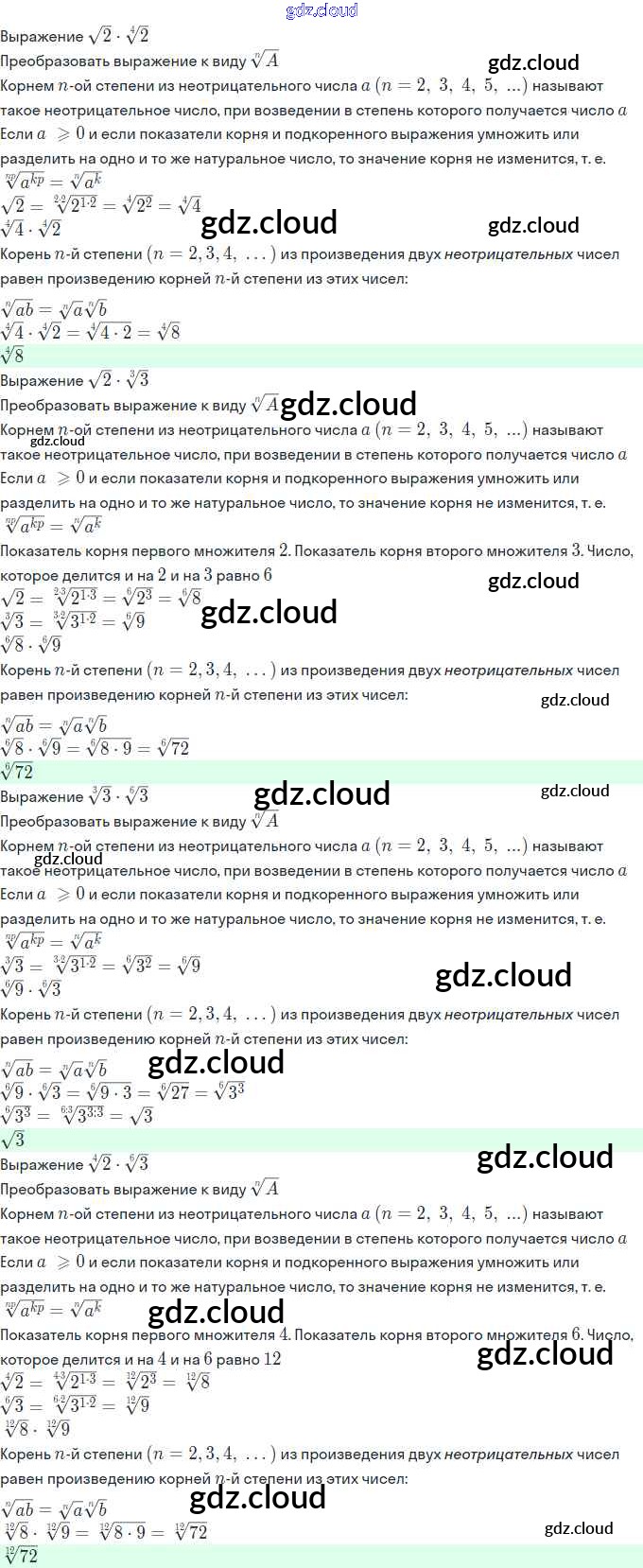 Ответы. §6. Свойства корня n-й степени по Алгебре 11 класс Задачник Мордкович Базовый и углубленный уровень Часть Мнемозина