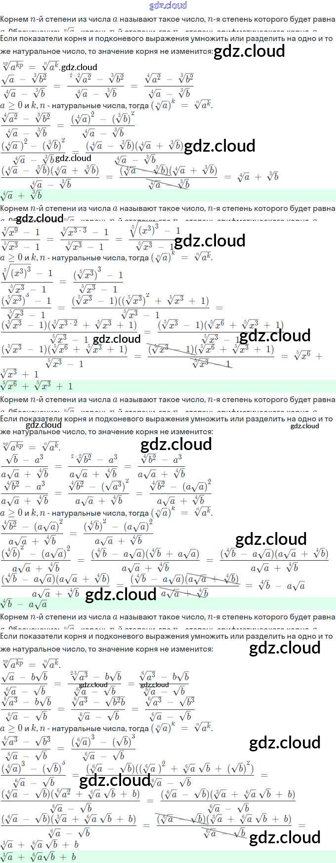 Ответы. §7. Преобразование иррациональных выражений по Алгебре 11 класс Задачник Мордкович Базовый и углубленный уровень Часть Мнемозина