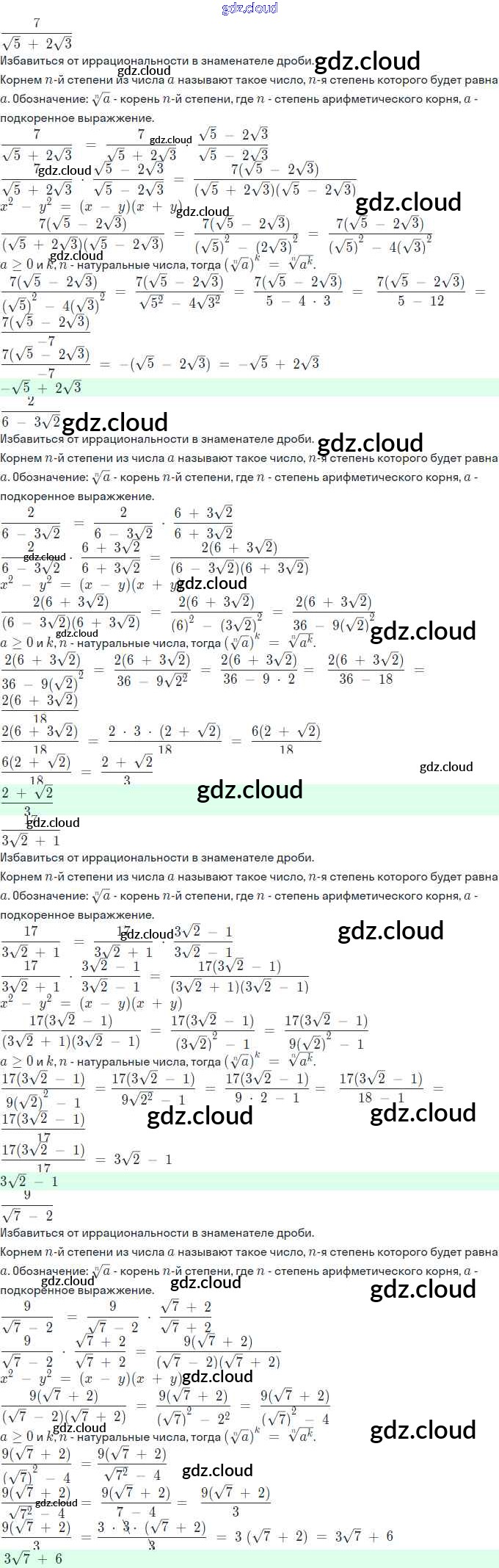 Ответы. §7. Преобразование иррациональных выражений по Алгебре 11 класс Задачник Мордкович Базовый и углубленный уровень Часть Мнемозина