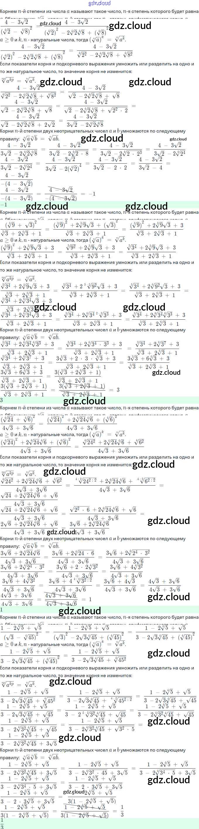 Ответы. §7. Преобразование иррациональных выражений по Алгебре 11 класс Задачник Мордкович Базовый и углубленный уровень Часть Мнемозина