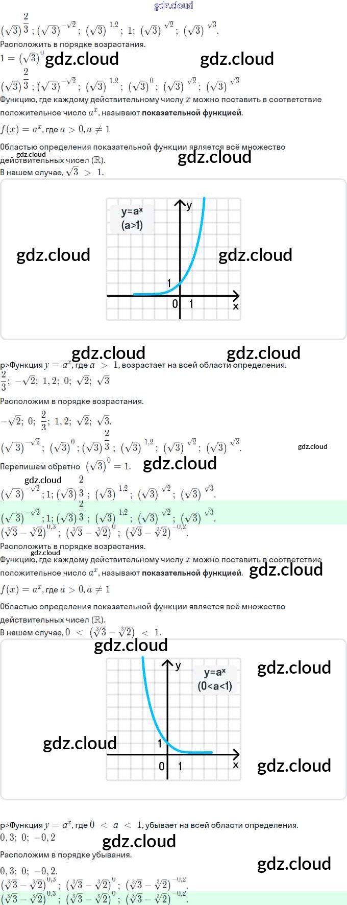 Ответы. §11. Показательная функция, её свойства и график по Алгебре 11 класс Задачник Мордкович Базовый и углубленный уровень Часть Мнемозина