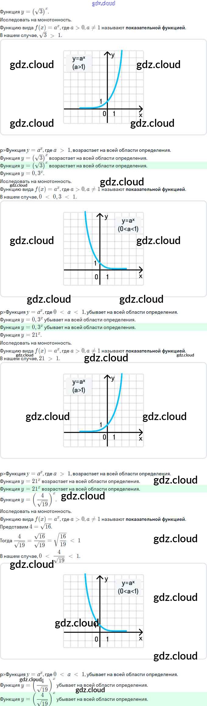 Ответы. §11. Показательная функция, её свойства и график по Алгебре 11 класс Задачник Мордкович Базовый и углубленный уровень Часть Мнемозина