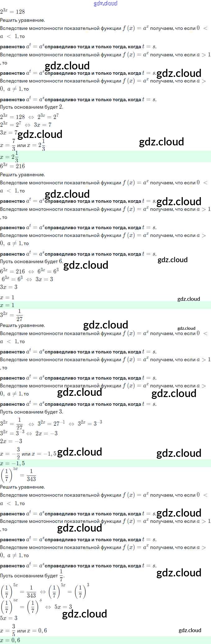Ответы. §11. Показательная функция, её свойства и график по Алгебре 11 класс Задачник Мордкович Базовый и углубленный уровень Часть Мнемозина