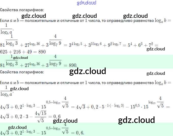 Ответы. §16. Свойства логарифмов по Алгебре 11 класс Задачник Мордкович Базовый и углубленный уровень Часть Мнемозина