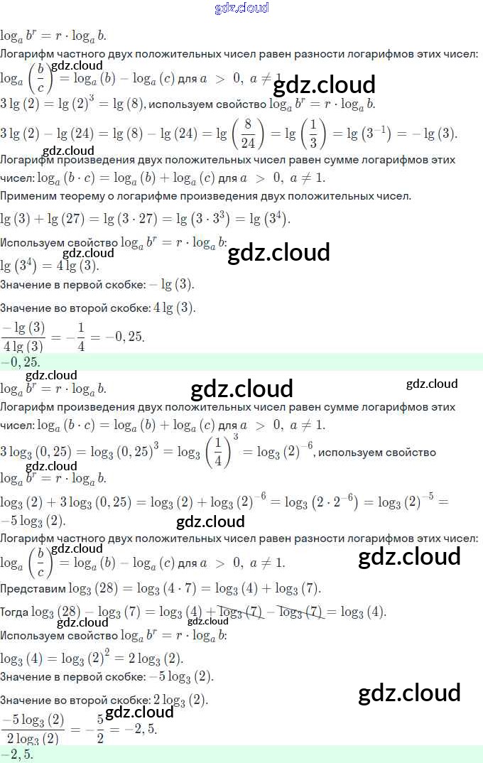 Ответы. §16. Свойства логарифмов по Алгебре 11 класс Задачник Мордкович Базовый и углубленный уровень Часть Мнемозина