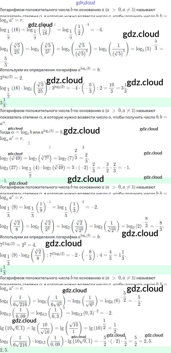 Ответы. §16. Свойства логарифмов по Алгебре 11 класс Задачник Мордкович Базовый и углубленный уровень Часть Мнемозина