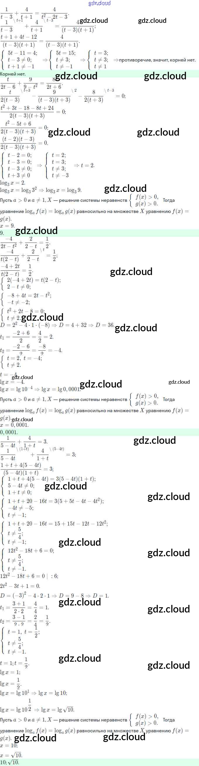 Ответы. §17. Логарифмические уравнения по Алгебре 11 класс Задачник Мордкович Базовый и углубленный уровень Часть Мнемозина