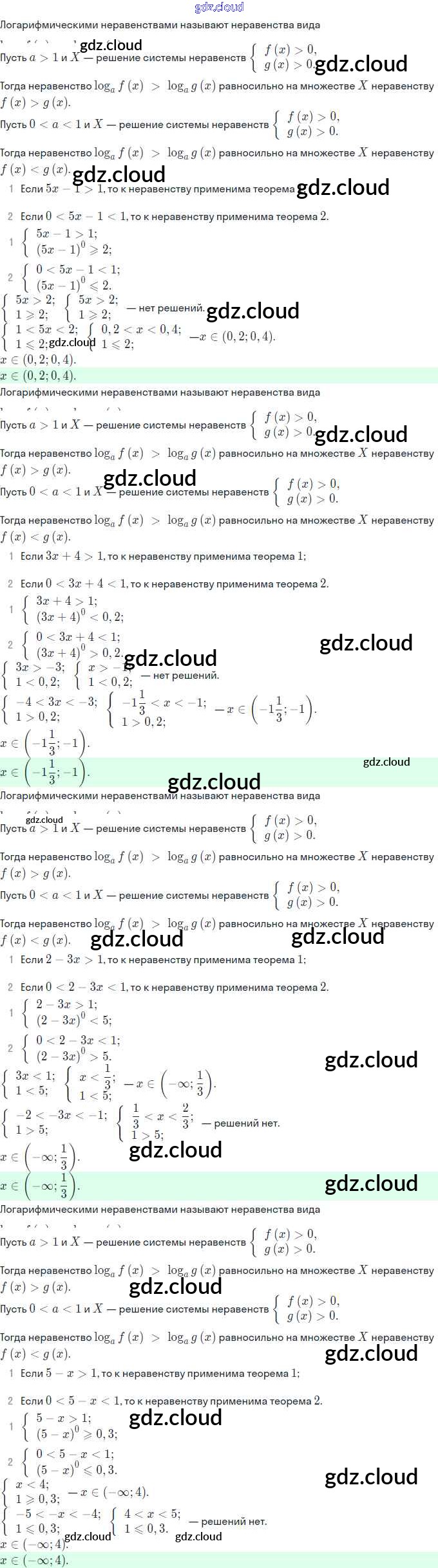 Ответы. §18. Логарифмические неравенства по Алгебре 11 класс Задачник Мордкович Базовый и углубленный уровень Часть Мнемозина