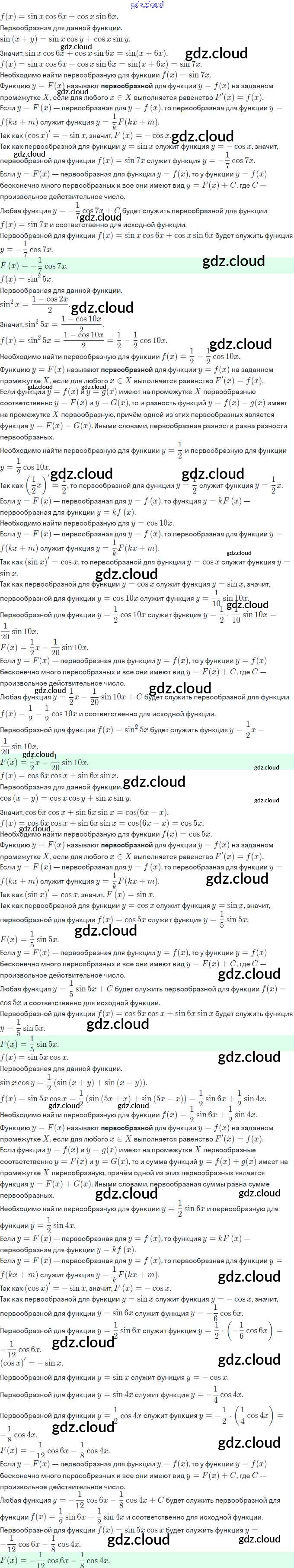Ответы. §20. Первообразная и неопределённый интеграл по Алгебре 11 класс Задачник Мордкович Базовый и углубленный уровень Часть Мнемозина