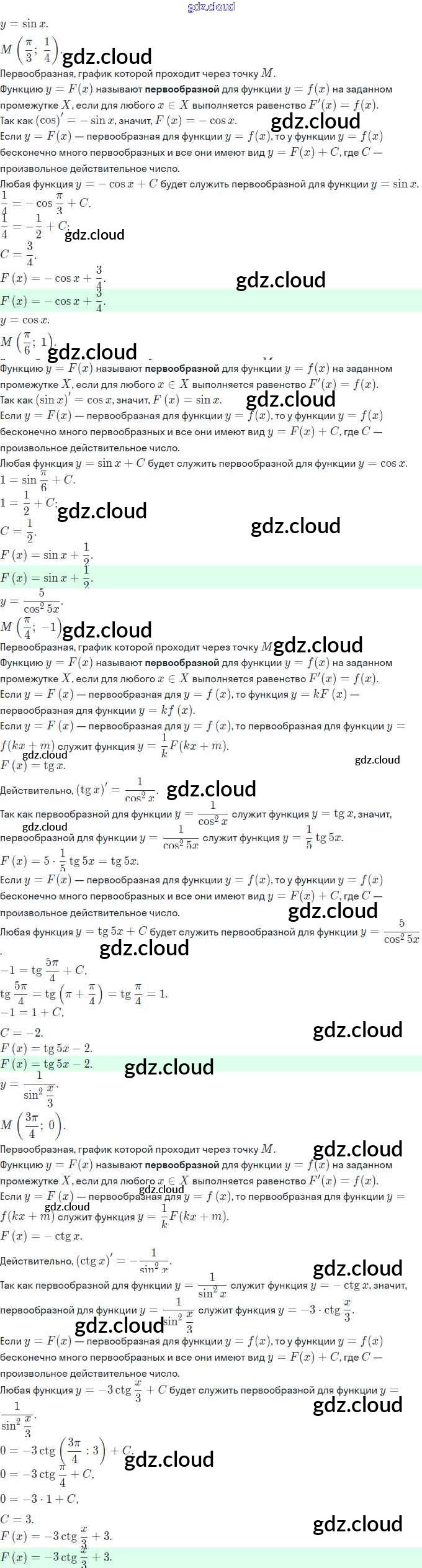 Ответы. §20. Первообразная и неопределённый интеграл по Алгебре 11 класс Задачник Мордкович Базовый и углубленный уровень Часть Мнемозина