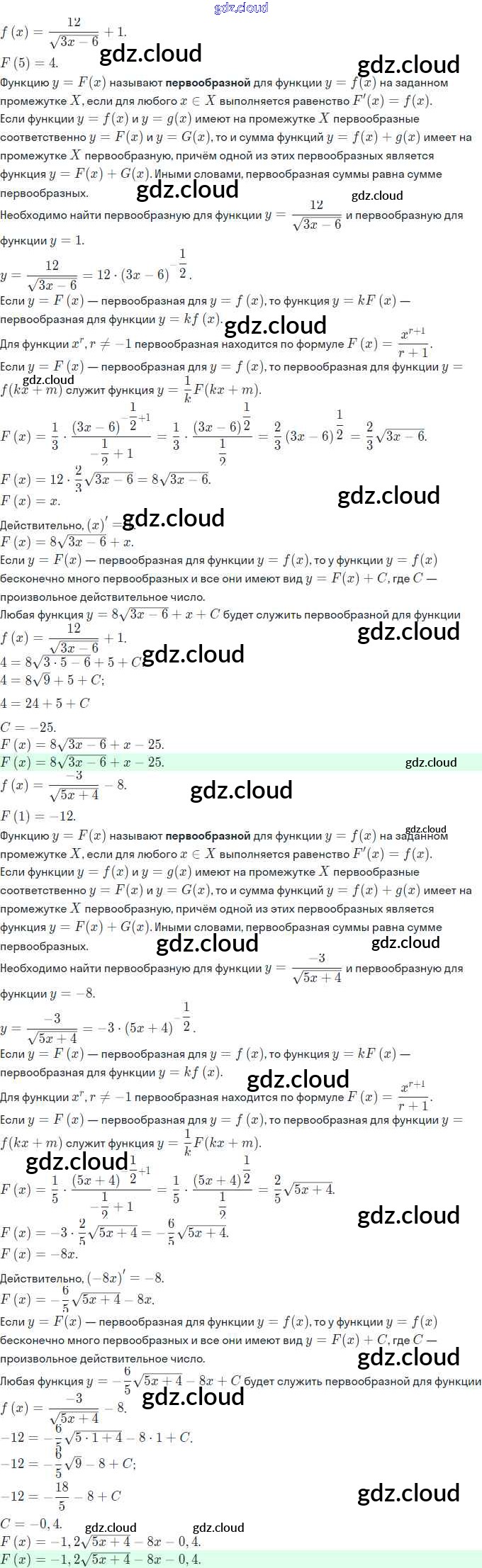 Ответы. §20. Первообразная и неопределённый интеграл по Алгебре 11 класс Задачник Мордкович Базовый и углубленный уровень Часть Мнемозина