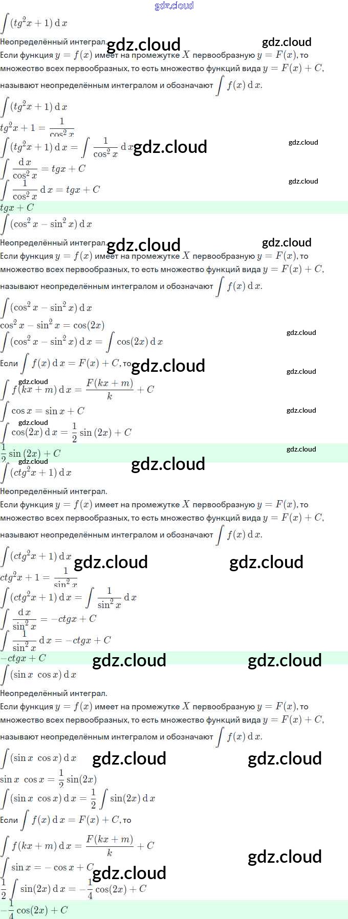 Ответы. §20. Первообразная и неопределённый интеграл по Алгебре 11 класс Задачник Мордкович Базовый и углубленный уровень Часть Мнемозина