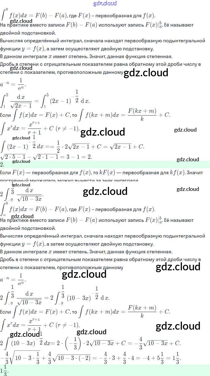 Ответы. §21. Определённый интеграл по Алгебре 11 класс Задачник Мордкович Базовый и углубленный уровень Часть Мнемозина