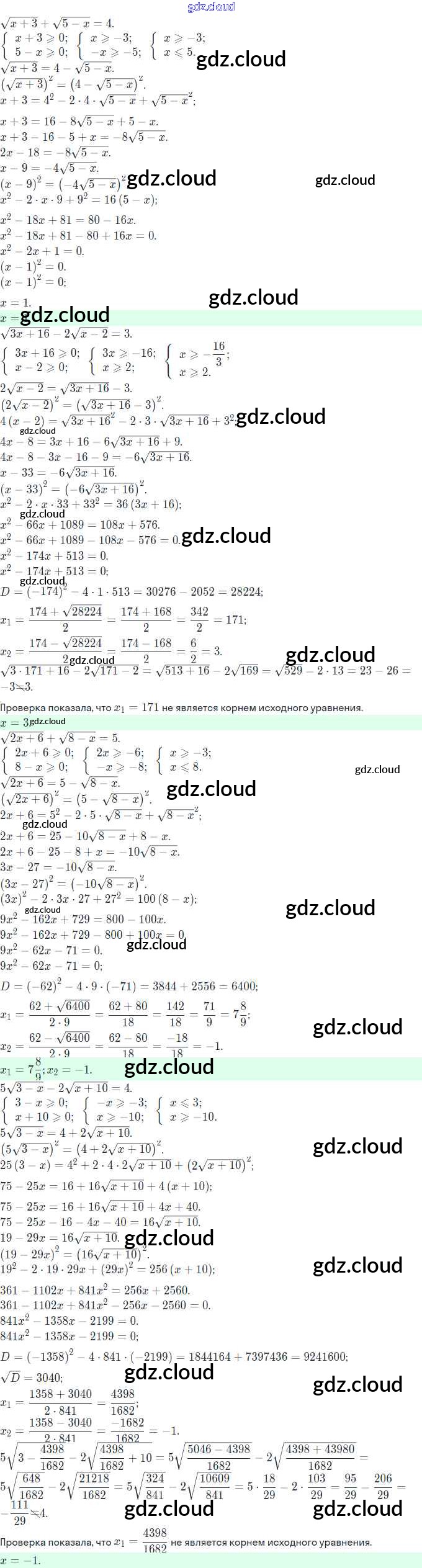 Ответы. §30. Иррациональные уравнения и неравенства по Алгебре 11 класс Задачник Мордкович Базовый и углубленный уровень Часть Мнемозина