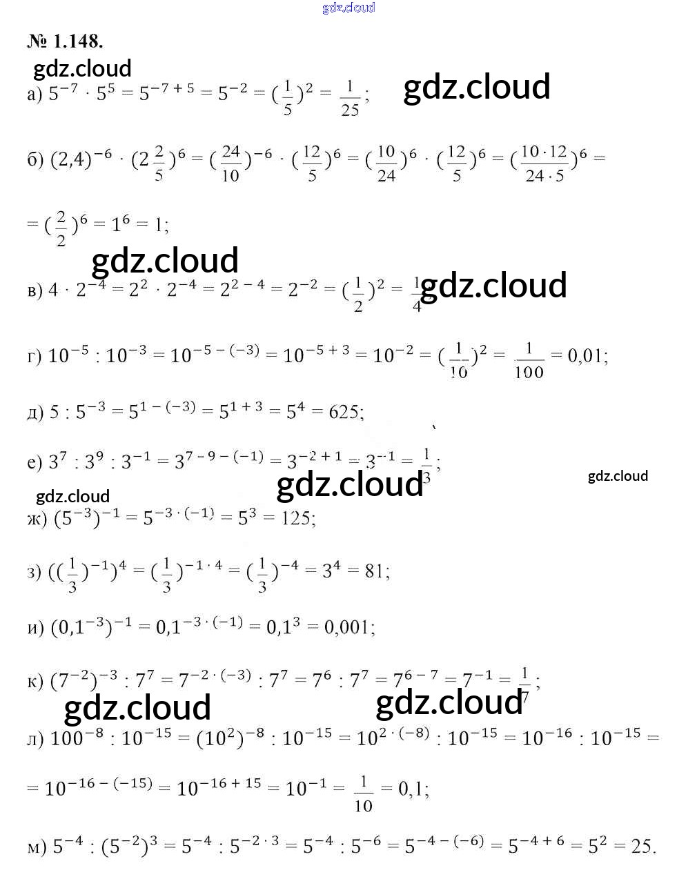 Ответ на задание 1.148 Учебник Алгебра за 7 (седьмой) класс Арефьева, Пирютко 2017 онлайн и без номера телефона.