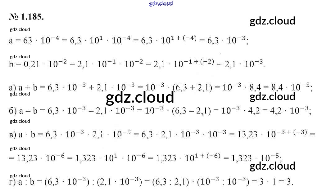 Ответ на задание 1.185 Учебник Алгебра за 7 (седьмой) класс Арефьева, Пирютко 2017 онлайн и без номера телефона.