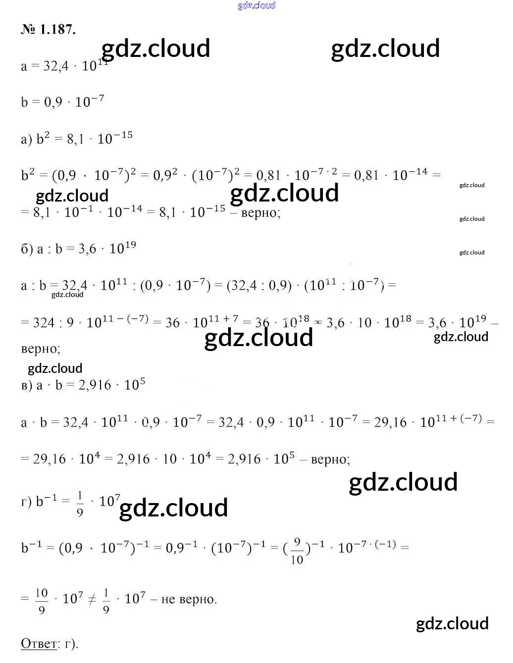 Ответ на задание 1.187 Учебник Алгебра за 7 (седьмой) класс Арефьева, Пирютко 2017 онлайн и без номера телефона.