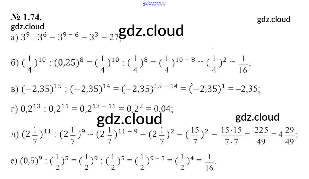 Ответ на задание 1.74 Учебник Алгебра за 7 (седьмой) класс Арефьева, Пирютко 2017 онлайн и без номера телефона.