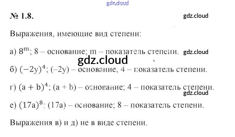 Ответ на задание 1.8 Учебник Алгебра за 7 (седьмой) класс Арефьева, Пирютко 2017 онлайн и без номера телефона.