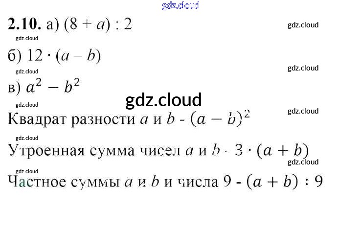 Ответ на задание 2.10 Учебник Алгебра за 7 (седьмой) класс Арефьева, Пирютко 2017 онлайн и без номера телефона.
