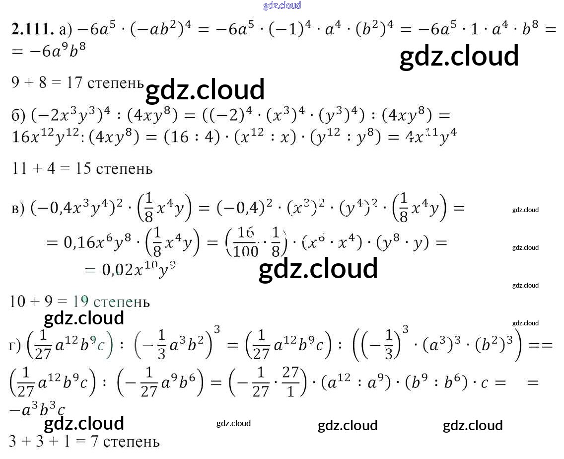 Ответ на задание 2.111 Учебник Алгебра за 7 (седьмой) класс Арефьева, Пирютко 2017 онлайн и без номера телефона.