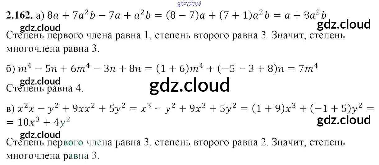 Ответ на задание 2.162 Учебник Алгебра за 7 (седьмой) класс Арефьева, Пирютко 2017 онлайн и без номера телефона.
