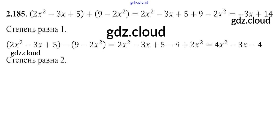 Ответ на задание 2.185 Учебник Алгебра за 7 (седьмой) класс Арефьева, Пирютко 2017 онлайн и без номера телефона.