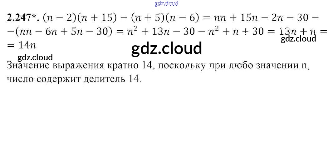 Ответ на задание 2.247 Учебник Алгебра за 7 (седьмой) класс Арефьева, Пирютко 2017 онлайн и без номера телефона.