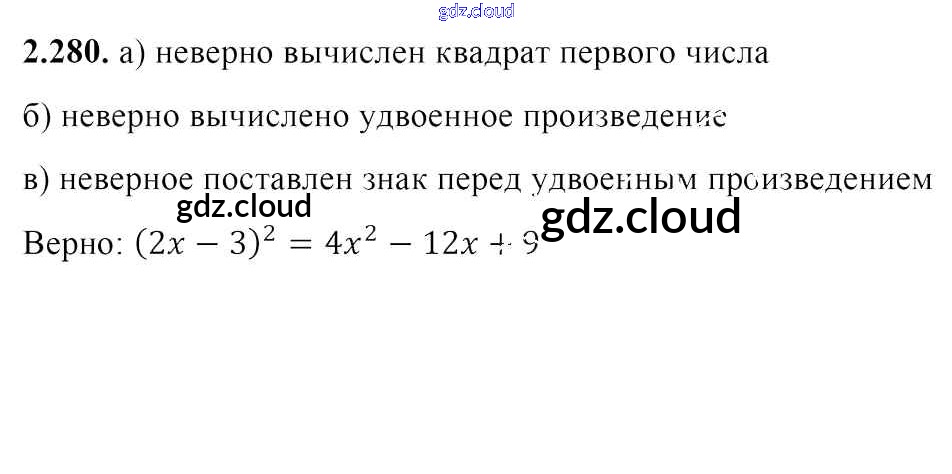 Ответ на задание 2.280 Учебник Алгебра за 7 (седьмой) класс Арефьева, Пирютко 2017 онлайн и без номера телефона.