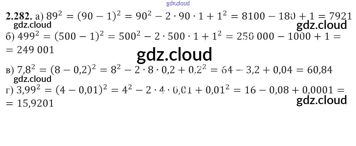 Ответ на задание 2.282 Учебник Алгебра за 7 (седьмой) класс Арефьева, Пирютко 2017 онлайн и без номера телефона.