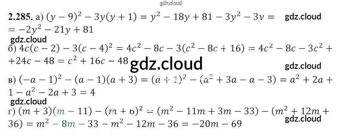 Ответ на задание 2.285 Учебник Алгебра за 7 (седьмой) класс Арефьева, Пирютко 2017 онлайн и без номера телефона.