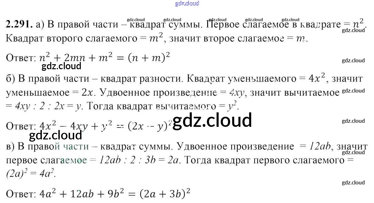 Ответ на задание 2.291 Учебник Алгебра за 7 (седьмой) класс Арефьева, Пирютко 2017 онлайн и без номера телефона.
