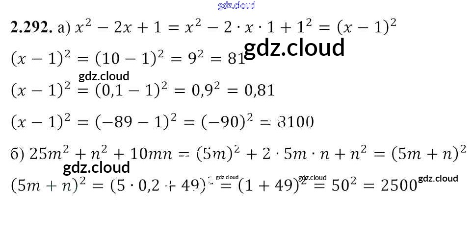 Ответ на задание 2.292 Учебник Алгебра за 7 (седьмой) класс Арефьева, Пирютко 2017 онлайн и без номера телефона.