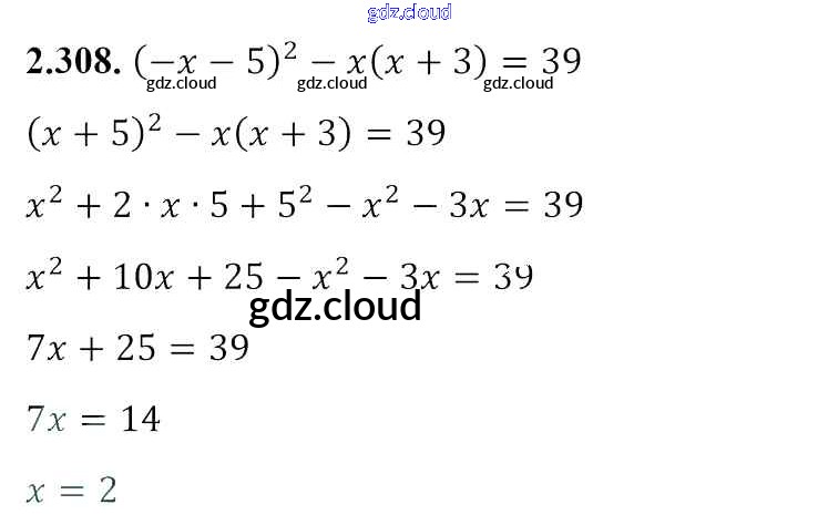 Ответ на задание 2.308 Учебник Алгебра за 7 (седьмой) класс Арефьева, Пирютко 2017 онлайн и без номера телефона.