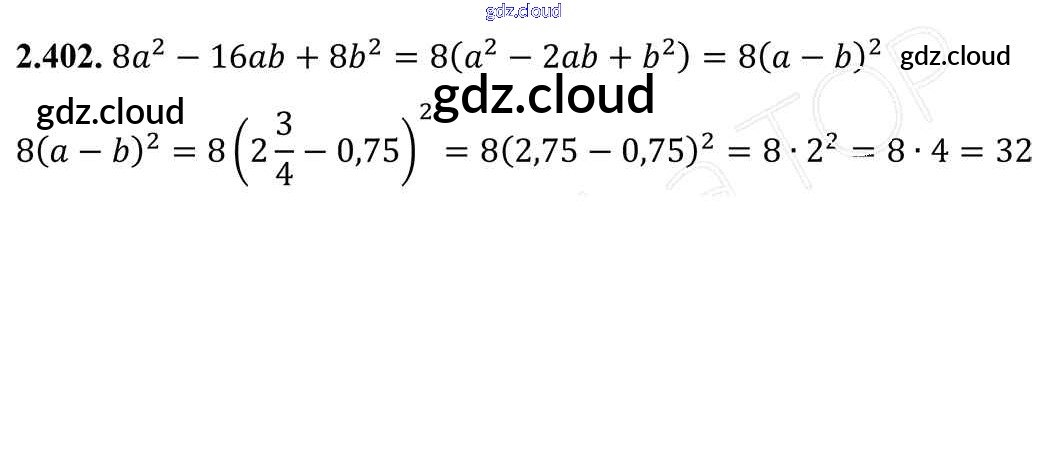 Ответ на задание 2.402 Учебник Алгебра за 7 (седьмой) класс Арефьева, Пирютко 2017 онлайн и без номера телефона.