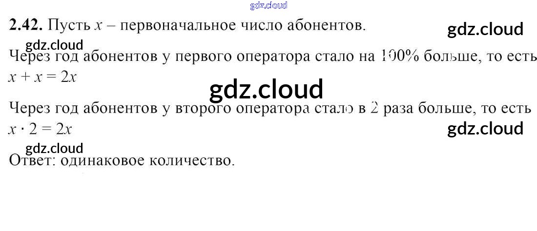 Ответ на задание 2.42 Учебник Алгебра за 7 (седьмой) класс Арефьева, Пирютко 2017 онлайн и без номера телефона.